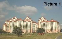 It is inauspicious to have a building sloping towards the sea. This means that whatever wealth owned will be `washed' to the sea. Picture one show a side profile of the building. Notice the sloping building as `highlighted in red'. Picture 2 and 3 are other profiles of the same building.