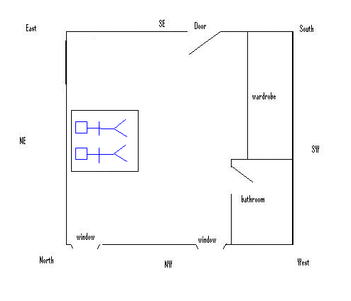 An alternative file: nw-bedplacement-2.gif shows the next best alternative (less the placement of the dressing table - as it is a poison arrow aimed partially at the bed. The dressing table should be placed further away or tilted away (if it does not have a dressing mirror on it).