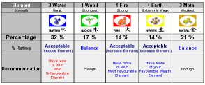 Thus, giving you a very comprehensive analysis into determining your True Birth Element (weak or strong Element) | |